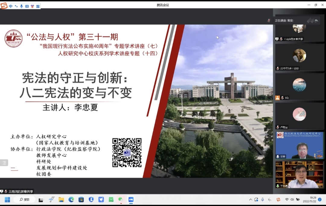 为了加强学生们对宪法的深入了解与学习,2022年11月21日,yl9193永利集团组织各专业学生在普法网完成宪法知识的在线学习与练习;同时,11月22日19:30,我院组织学生于线上学习了主题为“我国现行宪法公布实施40周年”的专题学术讲座。我院各专业无课班级学生参与学习。