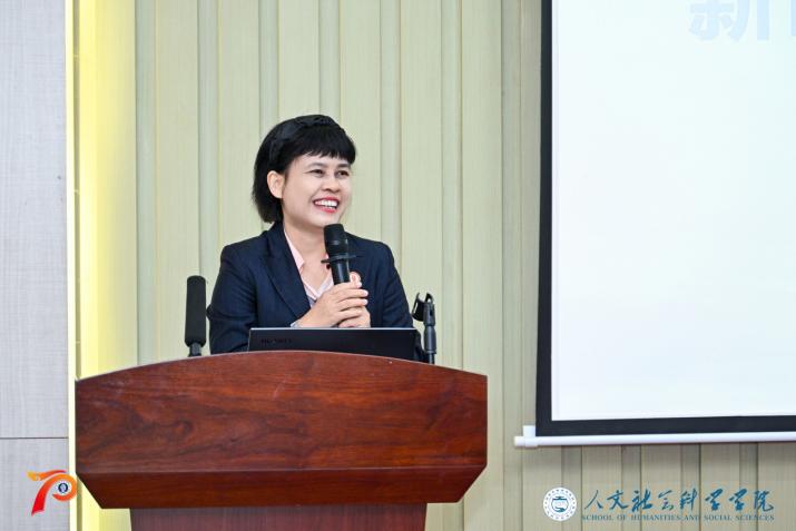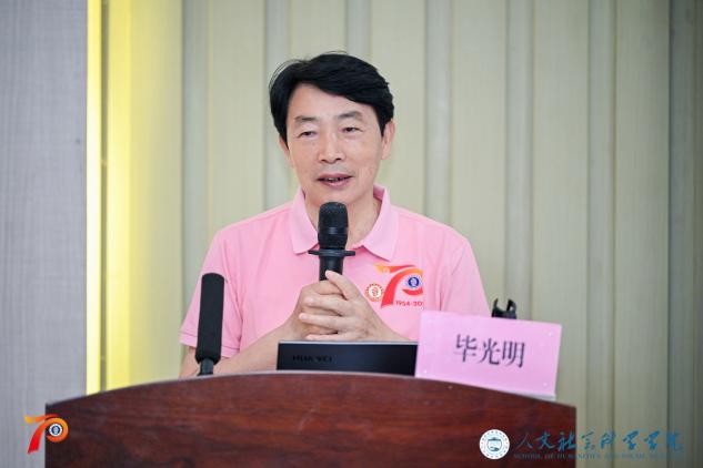 论坛的华彩篇章当属校友们的精彩讲演。毕光明、李景新等资深教师及校友以渊博学识与深刻洞见为师生呈上一场启迪心智的思想盛宴。他们的谆谆教诲,仿若熠熠星辰,照亮学子前行方向,使人深刻领略人文社科的深邃魅力与不朽价值。李景新老师于发言中深情回顾学院从五指山初创时的五间茅屋到三亚校区的蓬勃崛起,由衷慨叹:“我将坚守在五指山的岗位上,欢迎各位校友回家来看看!”